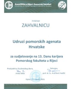 Udruga pomorskih agenata Hrvatske sudjelovala je na 13. Danu karijera Pomorskog fakulteta u Rijeci, gdje smo imali priliku predstaviti djelovanje Udruge te približiti studentima ulogu i značaj pomorskog agenta u suvremenoj pomorskoj industriji.